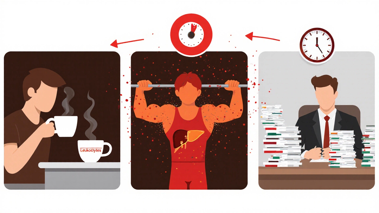 - Физическая нагрузка, меняющая уровень лейкоцитов и ферментов.